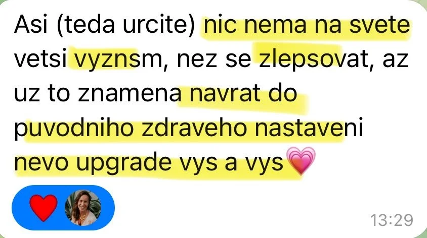 Když se mi život začal rozpadat, nezbylo mi než se obrátit dovnitř. Tahle krize mě přivedla k hluboké cestě sebepoznání – k práci s tělem, emocemi, nervovým systémem i podvědomím. Postupně jsem se spojila se svým pravým já a začala tvořit život, který je opravdu můj.